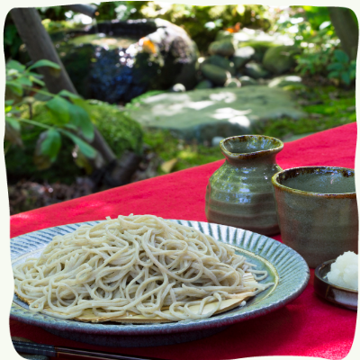 季節の移ろいを感じられる森の空間で、丹精込めたそばをすする喜び 自然が織りなす寛ぎの時間を心ゆくまでお楽しみください