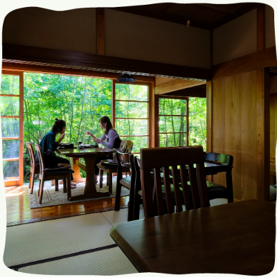 季節の移ろいを感じられる森の空間で、丹精込めたそばをすする喜び 自然が織りなす寛ぎの時間を心ゆくまでお楽しみください